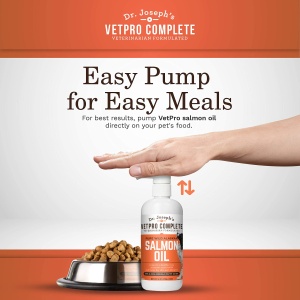 Bursting with EPH and DHA Omega-3 and Omega-6 Fatty Acids, by VetPro Complete’s Pure Wild Alaskan Salmon Oil pet food supplement helps protect your pet from joint and cardiovascular disease.