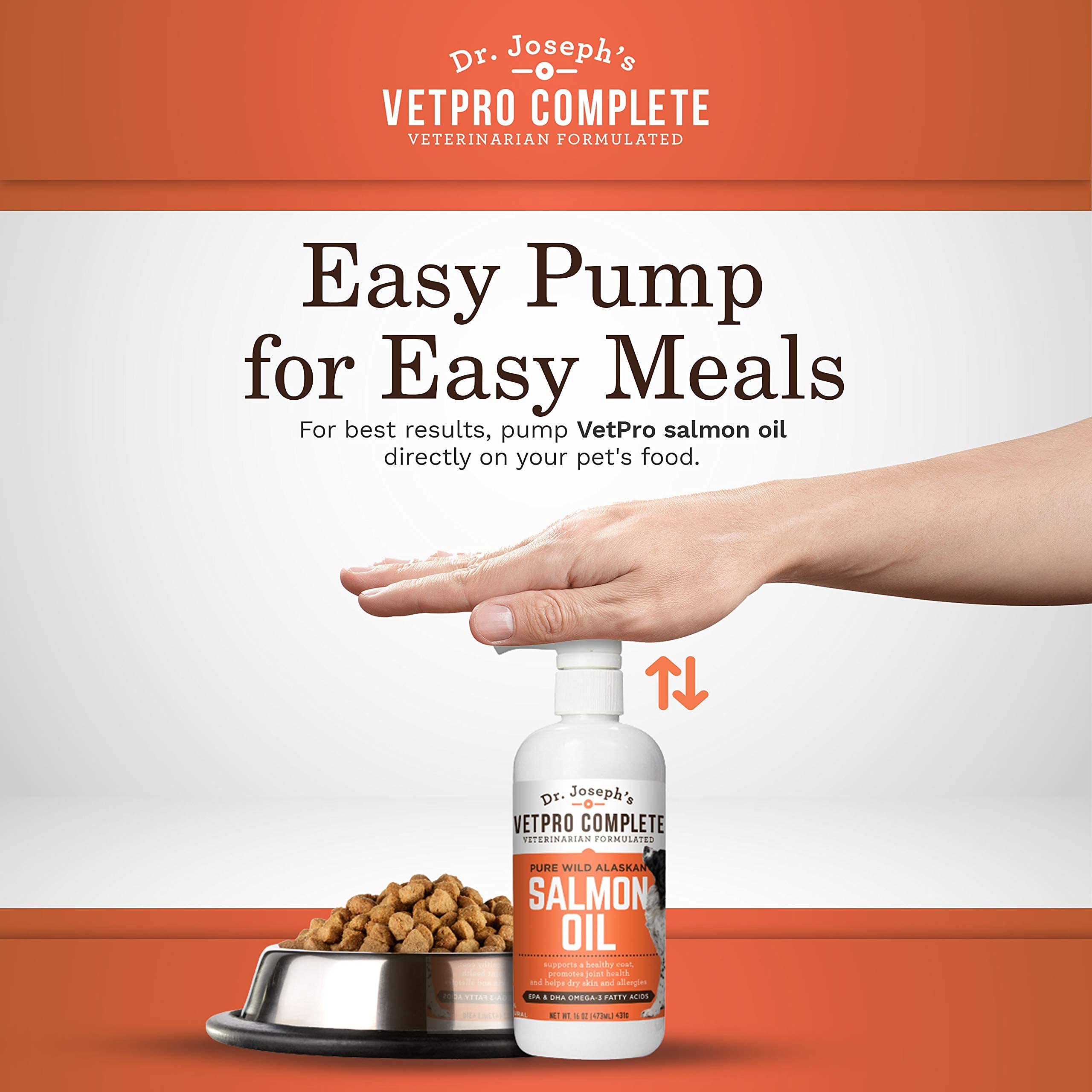 • ALL-NATURAL, MADE IN THE USA, SUSTAINABLY SOURCED – Vet Pro Complete’s unique formula contains only the highest quality Salmon Oil with no chemicals or byproducts. Each bottle is made in the USA, in a Good Manufacturing Practice (GMP) certified process.