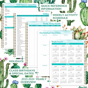 - SPECIALTIES – Calendar of 2023 and 2024, Holidays, Quick Reference Information, Class Birthday & Special Dates, Weekly Activity Schedule, Monthly View Pages, Weekly View Pages, Inner Tabs, Inspirational Quotes.
