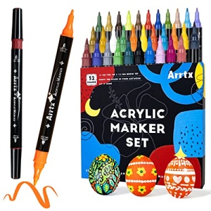 Arrtx Acrylic Paint Pens, 32 Colors Brush Tip and Fine Tip (Dual Tip) Paint Markers for Rock Painting, Water Based Acrylic Painting Supplies for Fabric Painting,Wood, Plastic, Canvas, Easter Egg