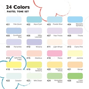 • 🎨 New 24 Fresh Colors Drawing Markers Set — A set of 24 vibrant colors, this 24-color pastel markers set has no repeating color with the previous 40-color set of Arrtx, it is recommended to use them in combination, the large selection of unique colors is just what you need to let your imagination run wild.