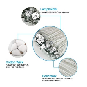 • Candle Wicks: ECO-FRIENDLY 100% cotton. Measures 6 inch in length and base 0.7 in diameter. Our wax will burn clean and non-toxic, No lead and zinc so there’s no bad smell during burning. No Black Smoking and Burning Stability when lit, safer and healthier to use.