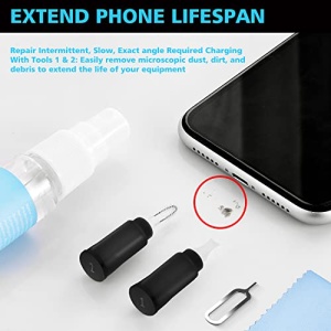• 【RESTORING UNRELIABLE CABLE CONNECTORS】Use the cleaning kit back of the port brush to recover 2 types of cables, use the Detergent carried to clean and repair damaged ports and charging cables, and repair intermittent charging, slow charging, and oxidation damage on connectors. Unreliable connections can be eliminated. Our phone cleaning kit will extend and protect the life of your device. (Compatible with Type-c data cable)