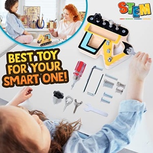 • 🚚【COMES WITH EVERYTHING IN ONE BOX】is a toy for every age from 4 5 6 7 8 9 10 11 12 years old and above. It includes a wooden board made of wood with proper safe edges for little ones, different screws so that child does not get bored, Allen Keys, a Wrench and a Screwdriver.