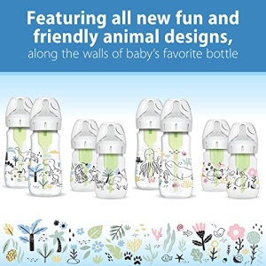 Dr. Brown’s Natural Flow® Anti-Colic Options+™ Wide-Neck Baby Bottle Designer Edition Bottles, Dino Decos, 9oz/270mL, Level 1 Nipple, 2-Pack, 0m+