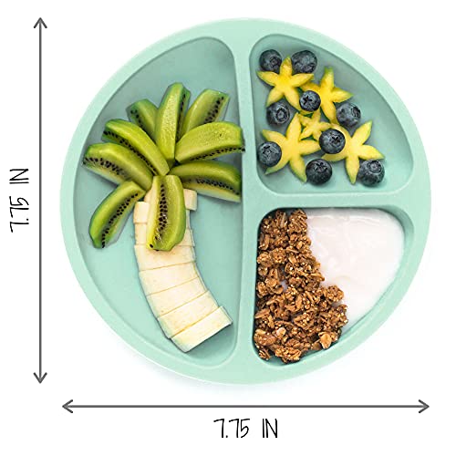 - ✔️ NEW SUCTION BOTTOM: Stays put to avoid spills! Includes 4 suctions on the bottom to keep plates in place while your little one practices using utensils.