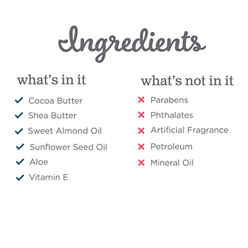- This creamy and rich lotion contains pure Shea butter, A naturally intense moisturizer for sensitive skin, and vitamins A and E-rich cocoa butter to help reduce the appearance of stretch marks.