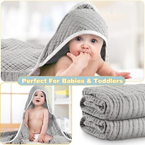 - Soft Absorbent Material: these muslin towels for baby are made of quality cotton material, breathable and absorbent, with a hood design to keep the baby’s body and head warm, machine washable and quick dry, very convenient for easy clean up, keep its softness, thickness and color even after many washes, can serve you for a long time
