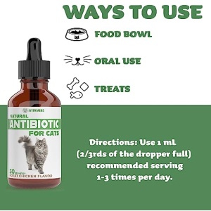 • ALL NATURAL ALTERNATIVE TO CHEMICAL ANTIBIOTICS: the newest and improved formula! No artificial additives! Just our Antibiotic for Cats – in liquid form!