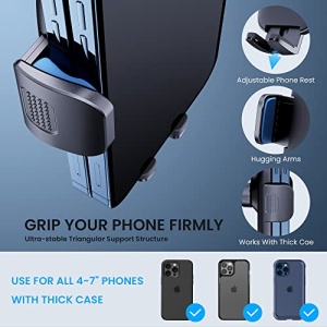 • [Upgraded Metal CD CLIP] Phone holder for car uses a built-in metal clip that is 20 times more stable than other ordinary plastic clips. Effectively solves the problem of falling off and sagging. Newly CD clip forms an ultra-stable triangular support structure that makes it possible to grip the phone steadily even on bumpy roads.