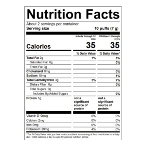 - This delicious healthy snack for babies is formulated with baby in mind as the Puffs dissolve easily when eaten, are easy for baby to hold, contain low amounts of sodium and zero grams of added sugar