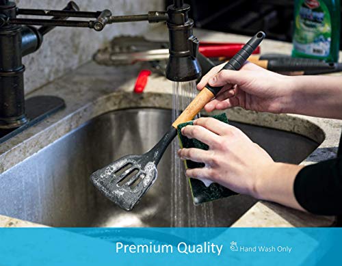 - Stylish Design : These black cooking utensils have a modern design that will match every kitchen decoration and style. The silicone kitchen tools come in elegant black and natural wood so they can be used for every style, from rustic and romantic to minimalist & modern.