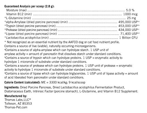 • Contains pancreatic enzymes and essential digestive enzymes for pets to aid digestion, support the immune system, improve the skin & coat, and provide energy