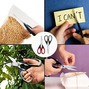 - [ALL PURPOSE KITCHEN SCISSORS]: The multifunctional kitchen shears can also be used as nut crackers, bottle openers and scale scrapers,Heavy duty sharp kitchen shears, soft comfort-Grip handles. Great All-purpose scissors for kitchen, household, home, car, outdoor general use, Great kitchen utensils set for women, men, adults, older kids.