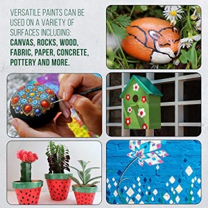 • Indoor & Outdoor, Weather and Fade Resistant Paint: The highly pigmented acrylic paint has a smooth consistency and excellent covering strength. Our acrylic paint is versatile and perfect for use on canvas, rocks, wood, fabric, paper, and most other art media. Paint portrait paintings, decorate rocks, paint kids wood crafts, toys, and birdhouses.