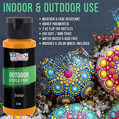 U.S. Art Supply Professional 24 Color Set of Outdoor Acrylic Paint in 2 Ounce Bottles, Plus a 7-Piece Brush Kit – Vivid Colors for Artists, Students – Use on Canvas, Rocks, Kids’ Wood Crafts, and Toys