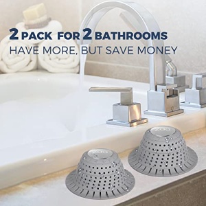 • 2 Pack for 2 Bathrooms — A must-have bathtub drain protector for big house/apartment with more than 2 bathrooms. Or one for the bathtub, another one for the tub sink. This VALUE SET OF 2 PACK let you have more, but save money on your home sewer protection.
